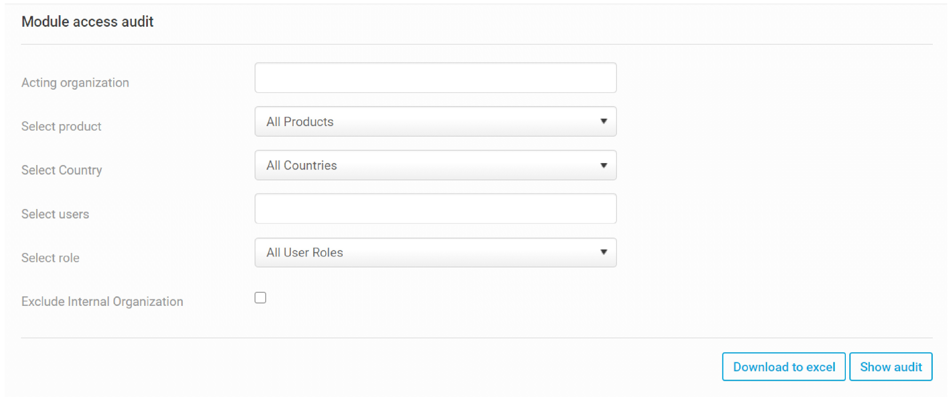 Navigate to System administration > Audits and reporting > Module access audit to view the Module access audit screen: